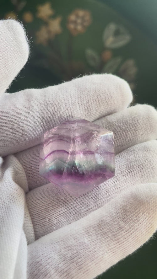 Rainbow Fluorite Faceted Hexagon