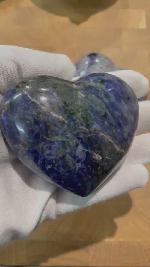 The large Sodalite Hearts vary in weight from 290 grams to 315 grams. Selected at random for shipping. Sold individually, the price is per heart.