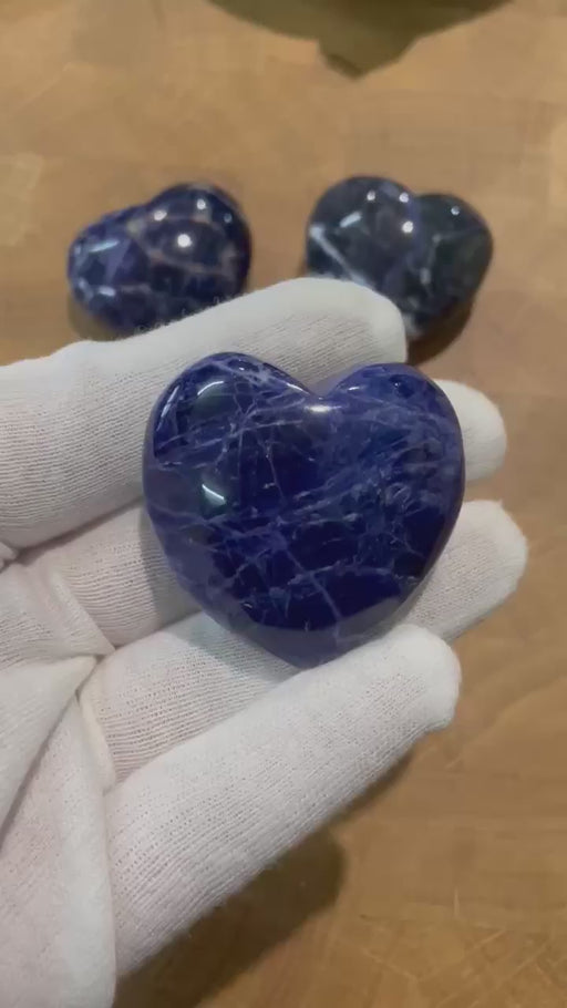 Sodalite Hearts vary in weight from 40 grams to 50 grams. Selected at random for shipping. Sold individually, the price is per heart.