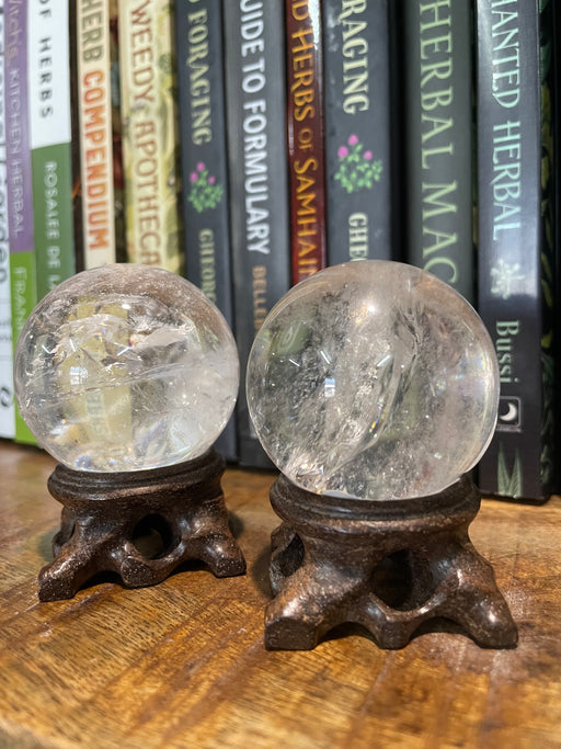 Clear Quartz Sphere The price is for one sphere, sold individually. The wooden stand is for display purposes only and is not included. Multiple sph...